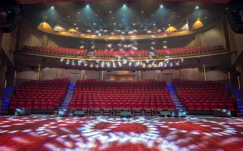 Khu vực sân khấu cao 15m, dài 17m, rộng 8m, được ốp gỗ tiêu âm, lắp hệ thống âm thanh, ánh sáng đạt tiêu chuẩn quốc tế về ca vũ, nhạc kịch. Sức chứa 825 ghế và có khu vực ghế Salon dành cho khách VIP.
